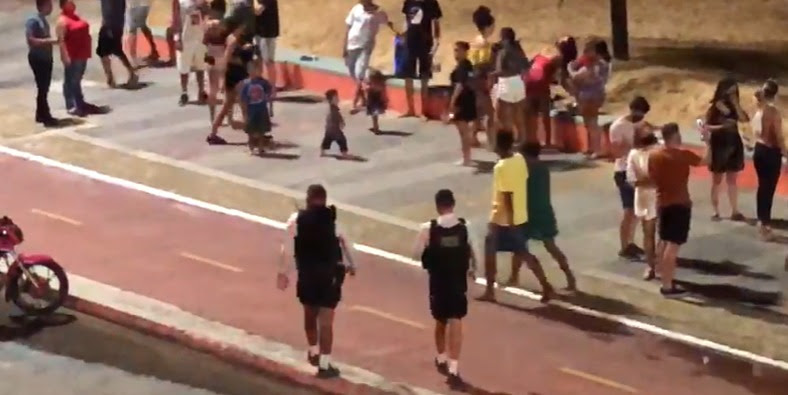A Polícia Militar desfez uma aglomeração que foi provocada por aproximadamente 30 jovens, no fim da noite desse sábado (17), na calçadinha da praia de Tambaú, em João Pessoa. Juntos, sem máscaras e nenhum tipo de distanciamento, eles ouviam músicas em uma caixa de som portátil.