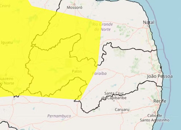 O Instituto Nacional de Meteorologia (Inmet) atualizou neste domingo (28) o aviso meteorológico de baixa umidade relativa do ar para 107 municípios da Paraíba, com validade até as 21h, indicando risco potencial para a saúde e necessidade de cuidados.