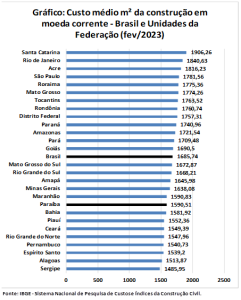 Com isso, o custo médio paraibano, que no mês anterior havia sido de R$ 1.590,33, passou para R$ 1.590,51, no mês analisado. Na grande região Nordeste, o valor foi o 2º maior, atrás apenas do verificado no Maranhão (R$ 1.590,83), e foi superior à média (R$ 1.561,97). Contudo, ficou abaixo da média brasileira (R$ 1.685,74).