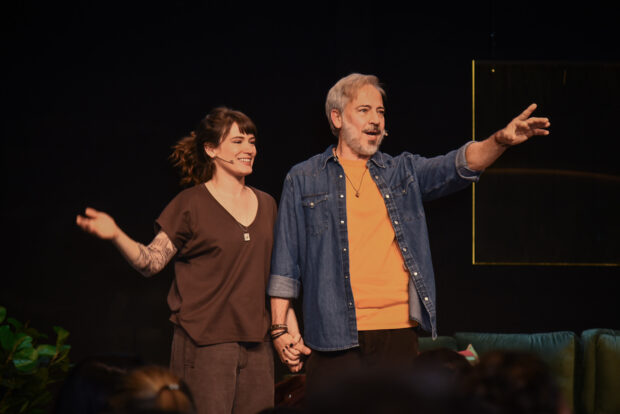 Edson Fieschi: O meu personagem é um terapeuta de outra geração, um baby boomer dos anos 1960 e 1970. A personagem da Bianca critica essa geração e, de certa maneira, responsabiliza esse universo por parte do que está acontecendo hoje. E ele tenta escapar disso com argumentos que também começam a convencer. Se não convencem ela, convencem a plateia.