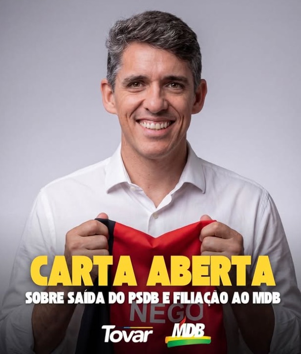 Após 20 anos de trajetória no PSDB, o deputado estadual Tovar Correia Lima anunciou sua filiação ao MDB. O parlamentar agradeceu o histórico apoio das lideranças tucanas, como Cássio e Pedro Cunha Lima, mas justificou a mudança como o início de um novo ciclo político.
