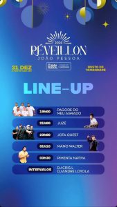 O diretor-executivo da Funjope, Marcus Alves, falou sobre a alegria em poder confirmar esta programação para a festa de virada de ano na ciade. “Na verdade, João Pessoa vive um momento muito especial na área de cultura, acompanhado, evidentemente, pelo desenvolvimento de outras áreas como educação, saúde, infraestrutura, turismo. Então, nós temos muito o que comemorar. Por isso, o prefeito Cícero Lucena nos estimulou a atrair essas grandes atrações para o nosso Réveillon. O pessoense e o turista que está aqui passando suas férias já se acostumaram a experienciar o Réveillon em nossas praias, e eu tenho certeza de que com essas bandas, esses músicos, o Réveillon será muito mais animado. Desejo a todos um grandioso 2026, cheio de desafios, mas, sobretudo, de esperança na força do trabalho e no desenvolvimento da nossa cidade”.