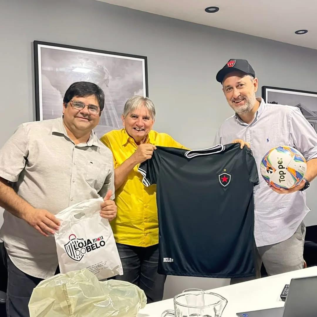“Eu e o companheiro Lima Souto dando as boas vindas à chegada do grupo Thathi de Comunicação que vai comandar a Rede Tambaú..a Rádio Nova Brasil FM..na foto um dos dirigentes o desportista @mauriciokrijusjacob…seja bem vindo”, diz.