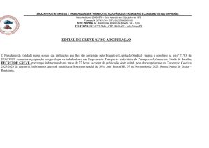 Os motoristas de ônibus da grande João Pessoa podem iniciar uma greve em 72h, conforme edital de greve publicado na tarde desta sexta-feira (7). O presidente do Sindicato dos Motoristas, Ronne Nunes de Sousa, afirmou em entrevista ao Portal Click PB que o patronato descumpriu o dissídio do acordo coletivo da categoria.