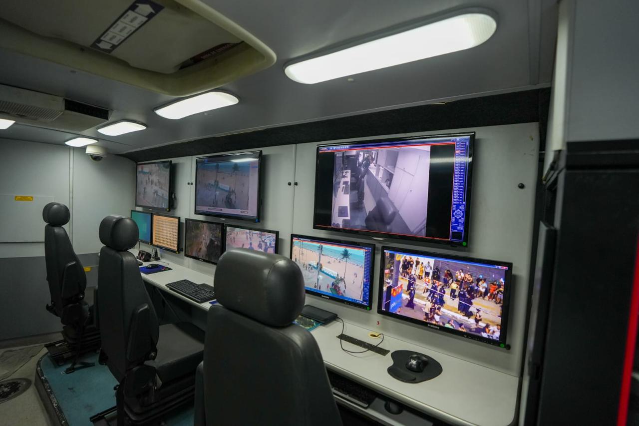 O esquema operacional inclui o uso de viaturas, como carros, vans, ônibus de monitoramento e motocicletas, além de policiamento aéreo com drones, ampliando a capacidade de vigilância e a resposta rápida das equipes em campo.