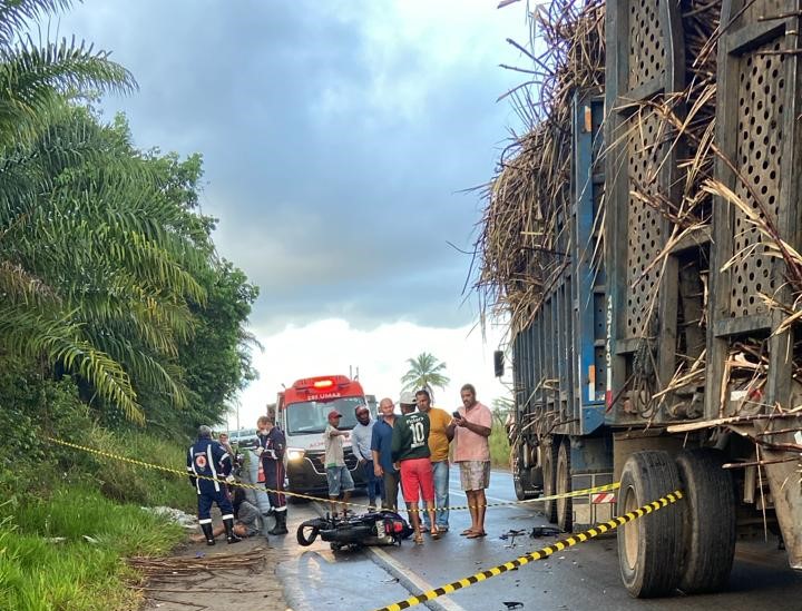 Um acidente fatal foi registrado na rodovia estadual que conecta os municípios de Caaporã e Alhandra, no Litoral Sul da Paraíba, na madrugada deste domingo (2). A colisão envolveu uma motocicleta e um caminhão e resultou na morte imediata do motociclista.