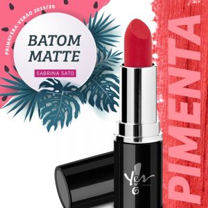 A primavera-verão é o período mais colorido do ano e as passarelas apostam em tons vibrantes como a tendência fashion do momento. Pensando nisso, a Yes! Cosmetics lança, nesta estação, seis novas cores de batom na linha assinada pela celebridade Sabrina Sato. Os batons têm acabamento matte e estão disponíveis nas cores Goiaba, Flamingo, Ipê, Pimenta, Pitaya e Uva.