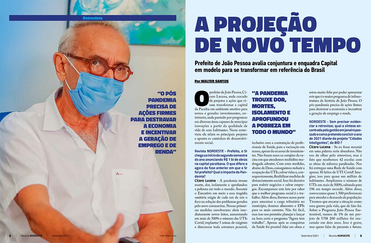 A edição de Nº 176 da Revista NORDESTE já está disponível para o leitor em edição impressa nas bancas e virtual (Clique aqui para acessar). O veículo apresenta entrevista exclusiva concedida pelo prefeito de João Pessoa, Cícero Lucena, ao jornalista Walter Santos, no qual revela as metas e projetos de potencialidade para transformar a Capital paraibana em referência na atração de grandes investimentos no país.