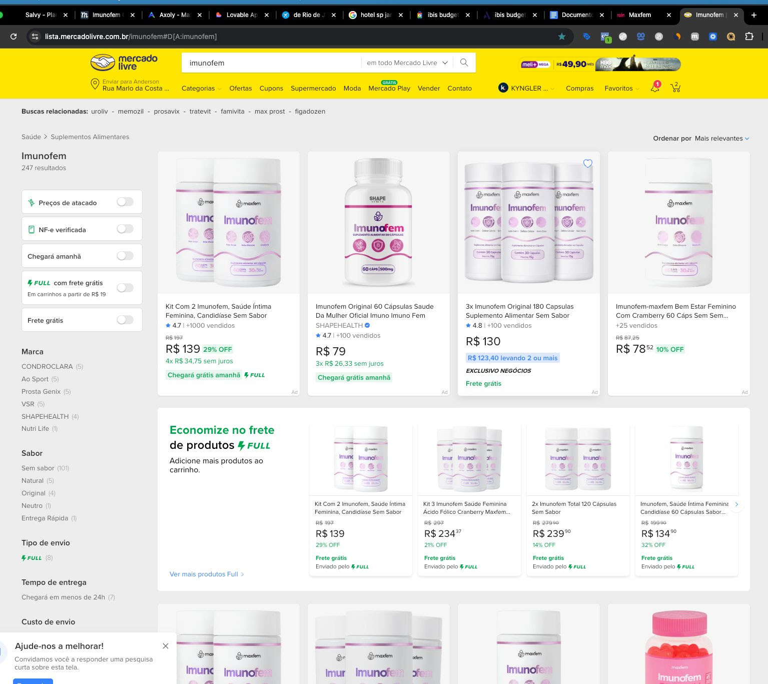 Anderson ainda acrescenta que esse modelo se repete no Rio de Janeiro, São Paulo, Santa Catarina e outros locais. “Em determinado momento um dos laranjas nos procurou para relatar que havia rompido em uma briga com seu mentor e se queríamos que ele operasse no Mercado Livre pra nós, chegamos a ouvi-lo, exatamente para entender a operação, nunca o colocaríamos dentro da nossa empresa, e o mesmo chegou a relatar que em apenas 1 semana chegou a faturar R$ 500.000,00 somente vendendo Imunofem, em apenas 1 loja. Dito isso, e levando esse números em consideração, além do nosso crescimento no ano de 2025, acreditamos fielmente que nosso prejuízo é de mais de R$ 20.000.000,00″, conclui.