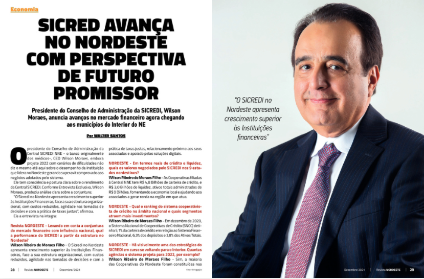 Em conversa com o jornalista e editor Walter Santos, o executivo Wilson Moraes faz projeções sobre o cenário econômico no ano de 2022, e destaca o desempenho do Sicredi, instituição que lidera o Nordeste gerando superávit comprovado nos negócios adotados pelo sistema.