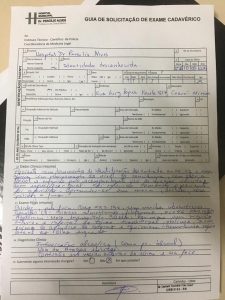 De acordo com a guia de solicitação de exame cadavérico assinado pela equipe médica do hospital, o homem de 27 anos tinha marcas de contusão no tórax e no rosto, além de intoxicação alcoólica e indícios de uso de drogas ilícitas.