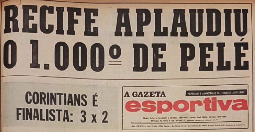 A “Gazeta Esportiva“, um dos mais importantes jornais esportivos do país, considerou inicialmente que a marca foi alcançada na goleada do Santos sobre o Santa Cruz por 4 a 0, na Ilha do Retiro, em 12 de novembro de 1969. No dia seguinte, ela estampou: “Recife aplaudiu o 1.000º de Pelé”.