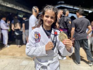 Uma das medalhistas de ouro foi Sofia Medeiros, de 9 anos. A garota, que treina no polo do projeto no Centro de Referência da Juventude, em Mangabeira, comemorou o resultado e já colocou em mente o sonho que pretende alcançar no jiu-jitsu.