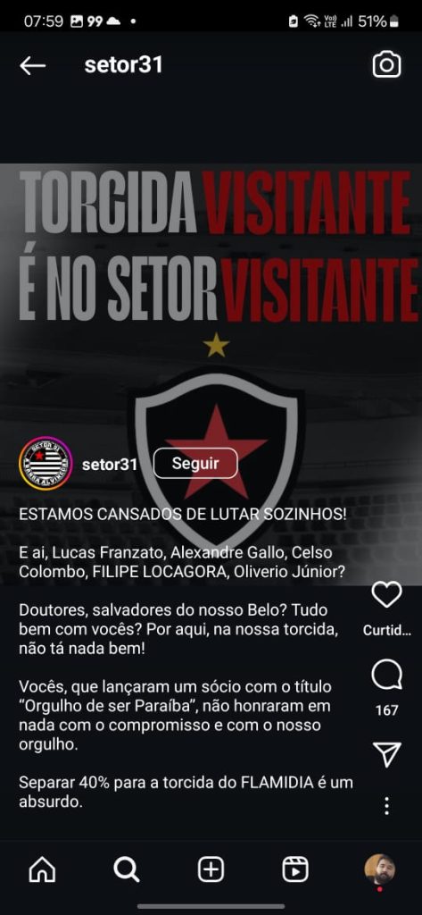 “Temos a certeza que todos unidos vamos mostrar ao Brasil uma grande organização para um dos jogos mais importantes da história do Botafogo. É assim, todos unidos para o bem do Belo!”, publicou o Botafogo-PB nas redes sociais.