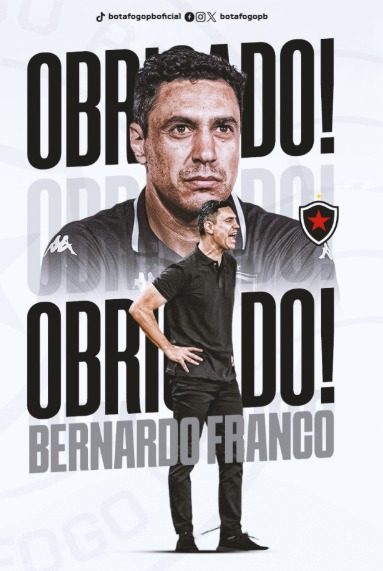 O Botafogo Futebol Clube SAF oficializou, por meio de comunicado, o desligamento do treinador Bernardo Franco. A decisão encerra o ciclo do profissional à frente da equipe técnica do clube alvinegro.