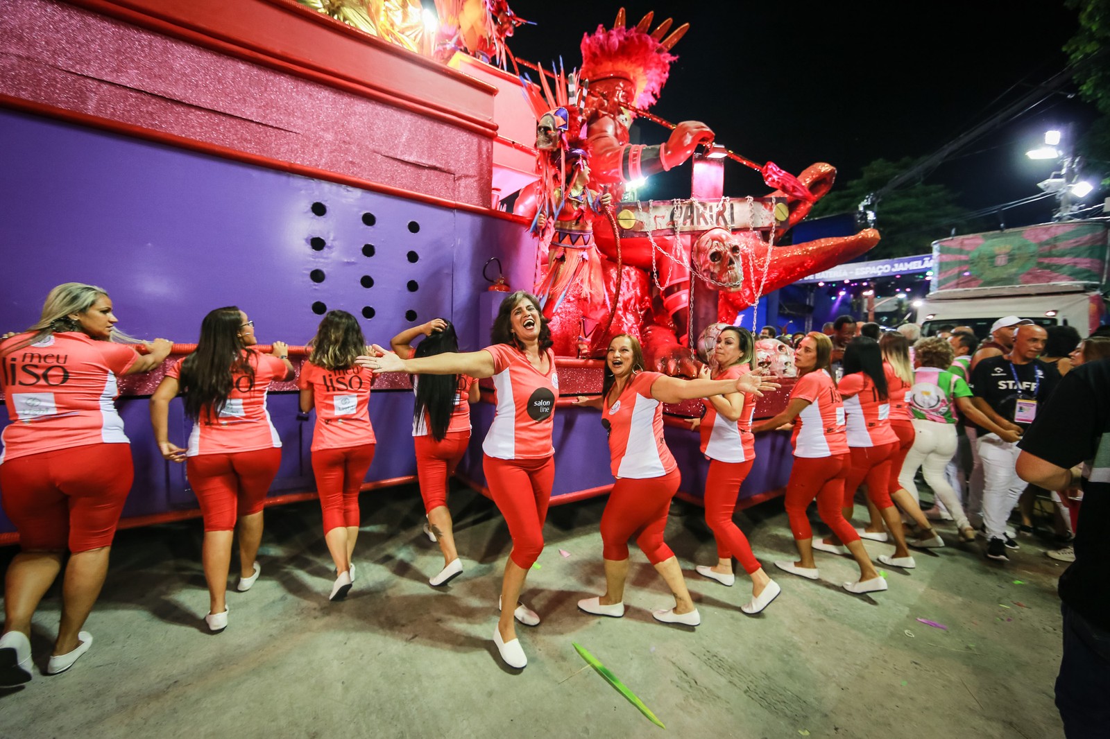 Outro momento de representação feminina foi um dos carros foi empurrado apenas por mulheres.