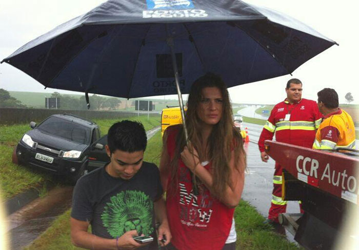 “Calma gente…Não foi dessa vez!! Ainda tenho umas 3 vidas, agora foi com o @YudiTamashiiro. Por causa da chuva, quase capotamos”, disse ela, que estava com o também apresentador do SBT, Yudi.