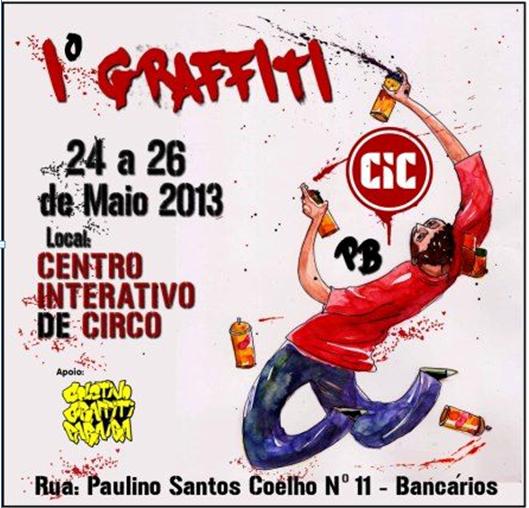 Nos dias 24, 25 e 26 de maio, o Centro Interativo de Circo (CIC), localizado em João Pessoa, promoverá um evento sobre a arte do graffiti e seu papel na sociedade atual. O evento durará três dias e, dentro da programação, temas como “empreendedorismo e graffiti”, “a mulher no graffiti de rua” e o “papel da arte engajada/religiosa envolvendo o graffiti” estarão sendo debatidos.