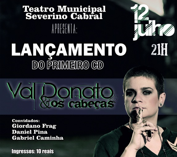 Há três anos, Val Donato gravou uma música sua pela primeira vez. Era “Para mim, você” que encantou público e crítica. Hoje, a cantora sobre ao palco do Teatro Municipal Severino Cabral para o lançamento do seu primeiro CD inteiramente autoral, Val Donato e Os Cabeças conta com 12 faixas e tem participação especial de Leoni cantando na faixa “Cargas”.