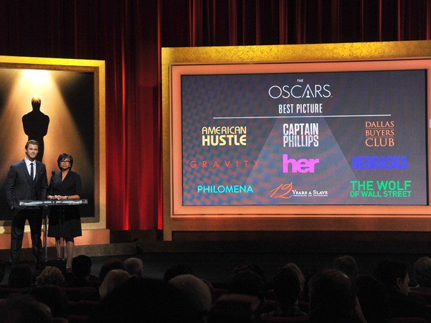 A lista foi divulgada pelo ator Chris Hemsworth, astro do blockbuster “Thor”, ao lado da presidente da Academia de Hollywood, Cheryl Boones Isaacs. O longa “12 anos de escravidão” aparece em seguida na lista, com nove indicações, concorrendo a melhor filme e melhor diretor.