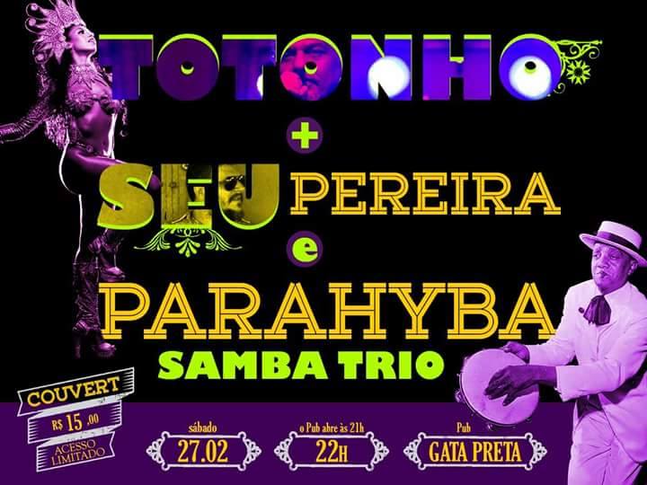 As portas serão abertas às 21h, e às 22h sobem no palco Totonho seguido de Seu Pereira e Parahyba Samba Trio para apreciação do público.