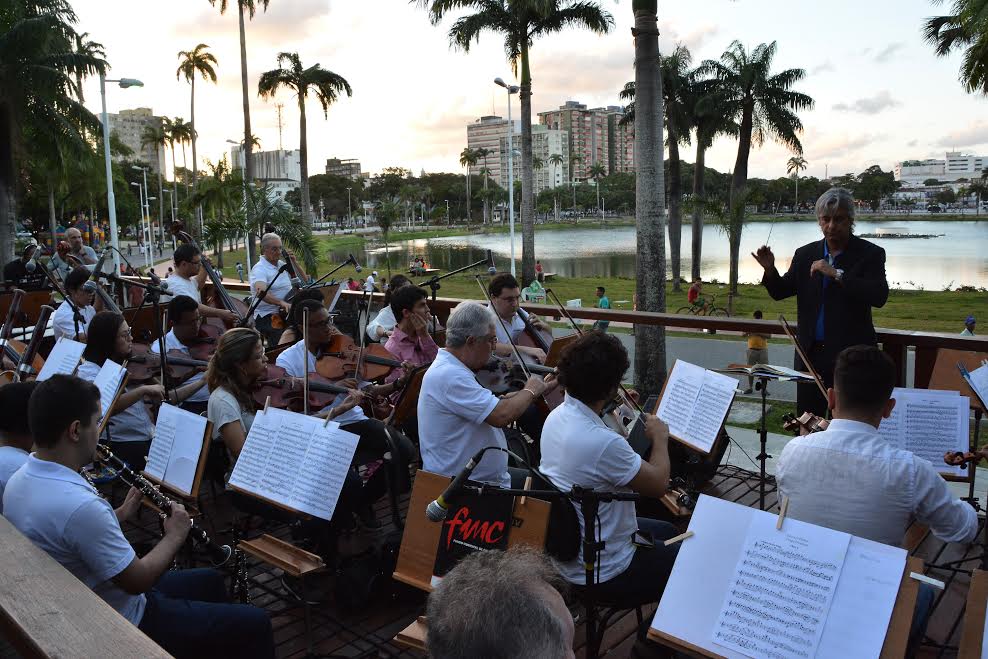 Uma tarde agradável e especial. Assim foi esta sexta-feira (12) no Parque da Lagoa Solon de Lucena para centenas de pessoas. Todas elas ficaram encantadas com o concerto da Orquestra Sinfônica Municipal de João Pessoa (OSMJP), que aconteceu durante o projeto ‘Pôr-do-Sol no Parque’, no deck harmonizado com o Cassino da Lagoa. A regência foi do maestro Laércio Diniz.