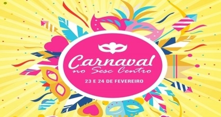 Carnaval é no Sesc Centro João Pessoa. Venha curtir nos dias 23 e 24 de fevereiro uma programação carnavalesca com oficinas, desfiles, aulões de dança, entre outros atrativos. A entrada é gratuita e aberta a quaisquer interessados.