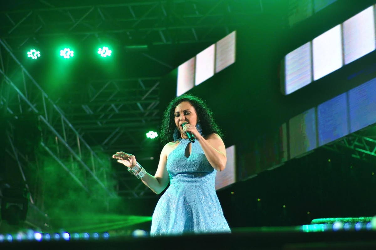 Quando ela subiu ao palco, cantando “Brilho da Lua”, uma multidão de forrozeiros e seguidores da artista tomou conta da área principal da festa. Com antigos sucessos e também canções de seus novos trabalhos, a Rainha do Forró animou o público.