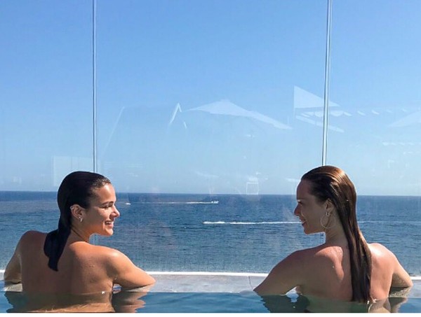 Mariana Ximenes e Bruna Marquezine curtiram juntas alguns dias do verão europeu em Ibiza, na Espanha. Nesta sexta-feira (14.07), Mariana compartilhou um clique em que ela e Bruna aparecem juntas, sorrindo, na piscina de topless – e com uma vista lindíssima.