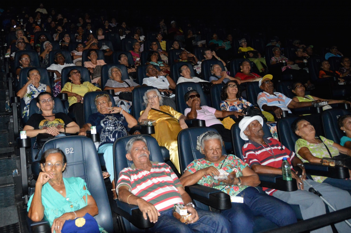 Idosos de Instituições de Longa Permanência (ILPs), como a Associação Promocional Ancião (Aspan) e Divina Misericórdia, e do condomínio Cidade Madura, participaram, na tarde desta quinta-feira (5), de um momento muito especial, com a visita ao Cine Banguê, para assistir ao filme “Gonzaga, de pai para filho”, que conta a história de vida do cantor Luiz Gonzaga. Cada cena foi apreciada com muita emoção e atenção pelos idosos presentes.