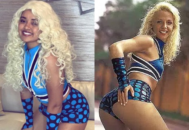 Segura o tchan, amarra o tchan, segura o tchan, tchan, tchan, tchan, tchan! Sim, Camilly Victória, de 15 anos, filha de Carla Perez com Xanddy, decidiu homenagear a mãe no Halloween, o famoso Dia das Bruxas, comemorado nesta terça-feira (31). É que ela usou um look azul e preto que ficou famoso nas curvas da mãe na época em que era dançarina do É o Tchan.