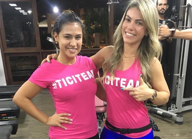E Simone, que faz dupla com a irmã Simaria, encarou de vez o objetivo de aliar alimentação saudável e malhação em prol da saúde e, de quebra, perder uns quilos na balança. No Instagram, ela e a personal trainer Tici Moreira da malhação na academia.