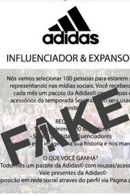 Em nota, a Adidas informou que a promoção para “supostamente recrutar influenciadores” e o perfil @adidasinfluenciadores, que compartilhou a postagem, são falsos. A empresa disse que está tomando as medidas necessárias para punir os responsáveis e que se comunica exclusivamente por seu canal oficial, o perfil @adidasbrasil.