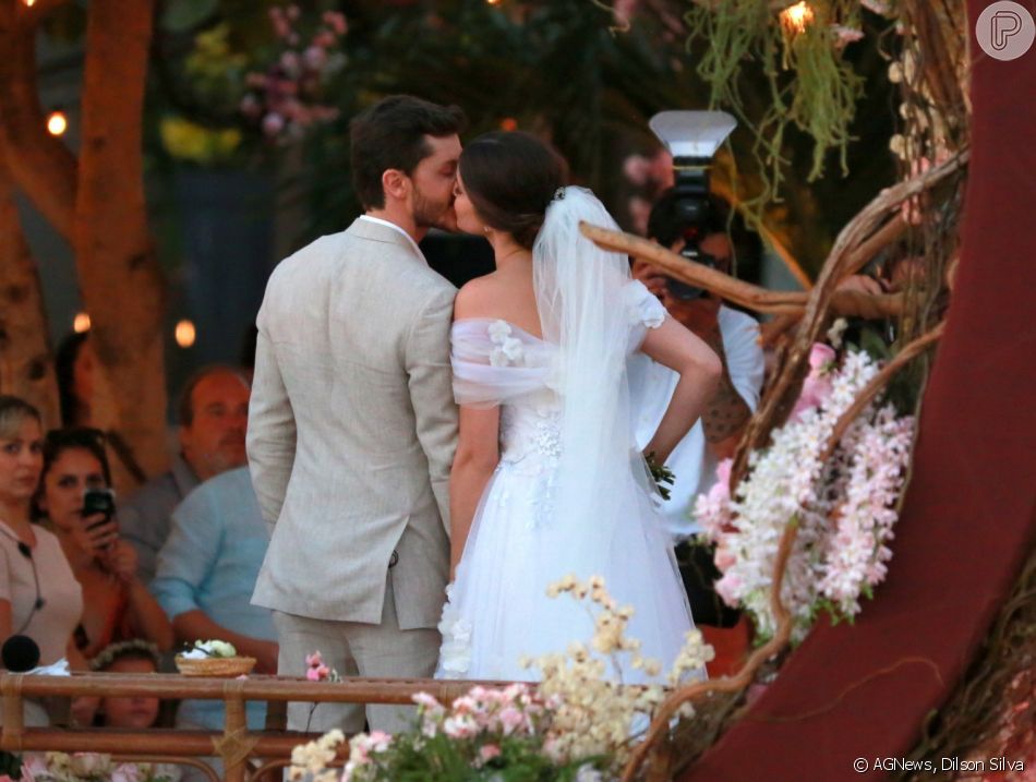Camila Queiroz e Klebber Toledo se casaram em uma cerimônia para 300 pessoas no luxuoso hotel Essenza, em Jericoacoara, no Ceará, neste sábado (25). Os dois foram levados ao altar por suas mães e escolheram não usar sapatos no casamento. Romântico, o ator ajoelhou-se para colocar a aliança na mão esquerda da noiva, que usou um vestido com 461 flores de tecido assinado por Lethicia Bronstein. Com a benção de doze casais de padrinhos, entre eles Luan Santana e Vanessa Giácomo, o casal – que está junto há dois anos – se beijou antes de deixar o local da cerimônia, arrancando gritos dos convidados.