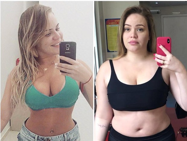 “Bom, quem me acompanha sabe que a 6 anos atrás, emagreci 46kg com mudança alimentar e atividade física, (fiz vibro lipo nas costas e coloquei silicone quanto já tinha eliminado 36kg) eu mantive esse corpo da primeira foto por 5 anos, aí vem a pergunta , Paulinha, por que você engordou? Bom, foram vários motivos, mas tudo começou assim: eu criei uma paixão por correr e por atividade física em geral, e por uma lesão no meu joelho esquerdo fui proibida de continuar qualquer atividade física, tive que parar tudo de uma hora pra outra e a paranóia que acompanha todo mundo que já foi gordo nessa vida, não saia da minha cabeça: ‘eu vou engordar, eu vou engordar’, mas continuei com minha alimentação saudável, eu tinha aprendido a gostar de verdade, mas mesmo assim um mês depois de parar tinha engordado 7kg e com os medicamentos eu fiquei um tanto quanto inchada demais e quando eu me olhava no espelho me dava um certo desespero”, completou Paulinha.