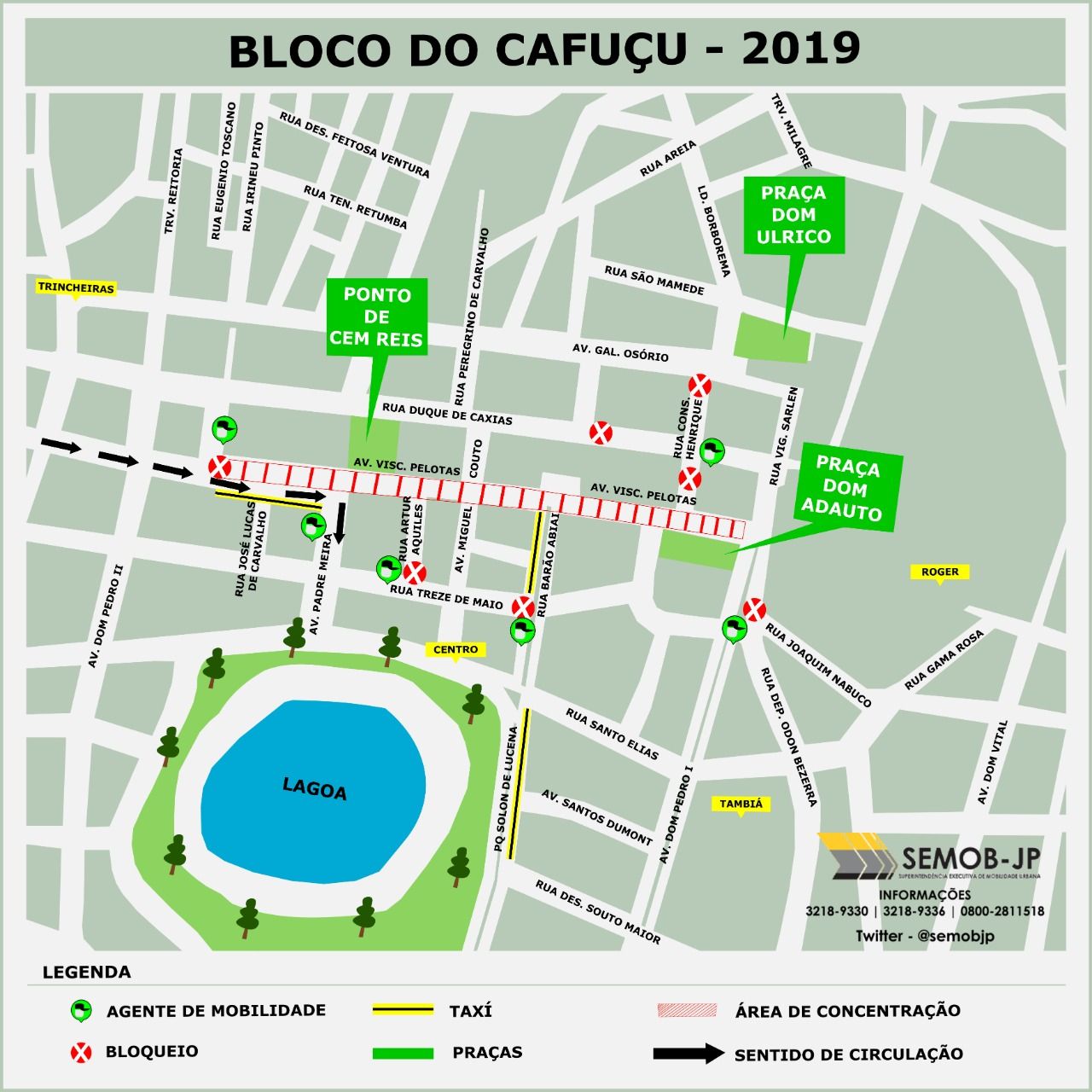 A Superintendência Executiva de Mobilidade Urbana (Semob-JP) vai modificar o trânsito no Centro e reforçar o transporte coletivo para o desfile do bloco Cafuçu nesta sexta-feira (1º). O objetivo é garantir a fluidez do trânsito e a segurança dos pedestres durante a organização do evento e passagem dos foliões.