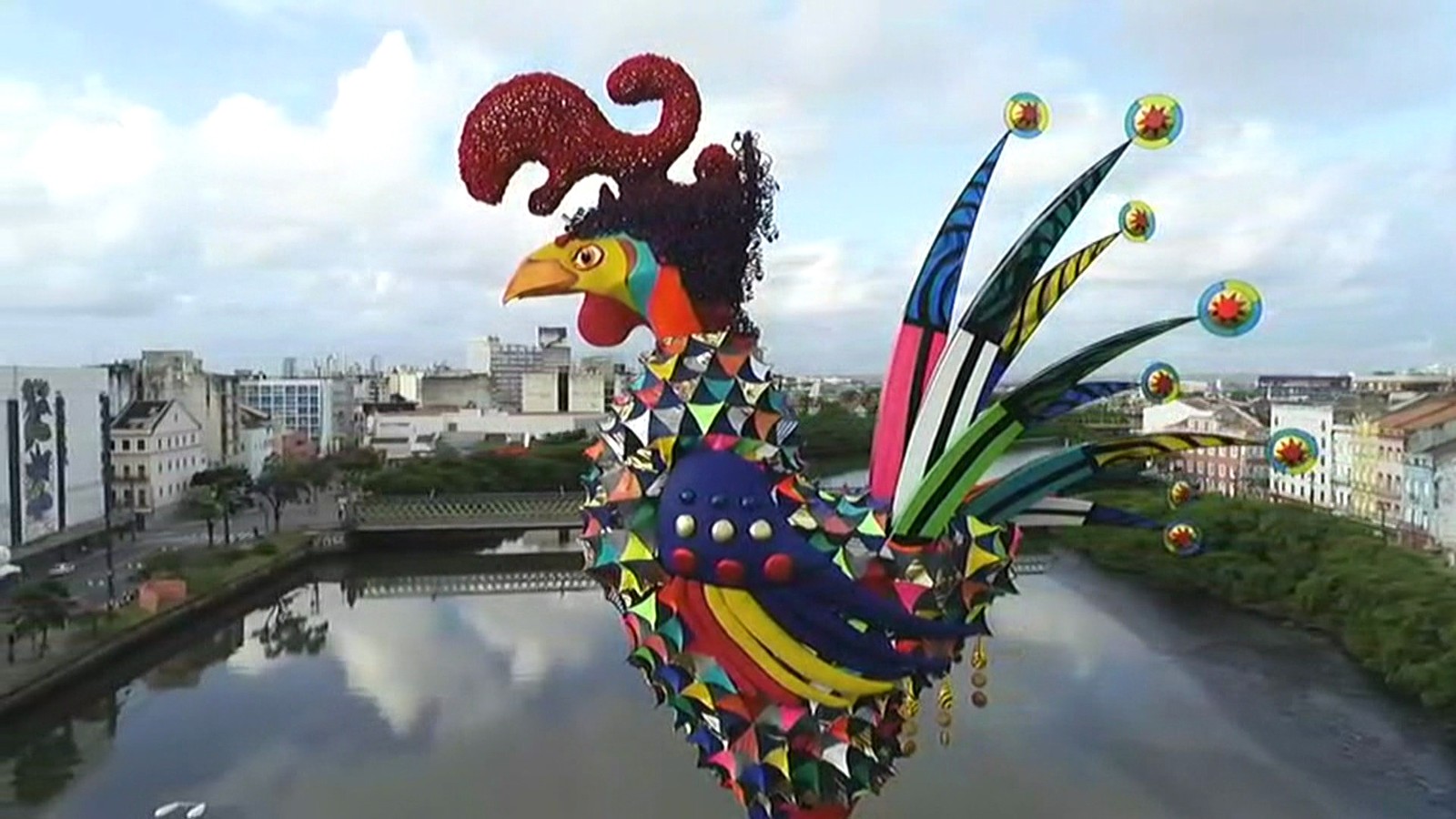 Este ano, Galo gigante homenageia os artesãos e foi elaborado com a ajuda de 50 pessoas, entre funcionários da prefeitura e artistas da Bomba do Hemetério, Zona Norte da cidade.