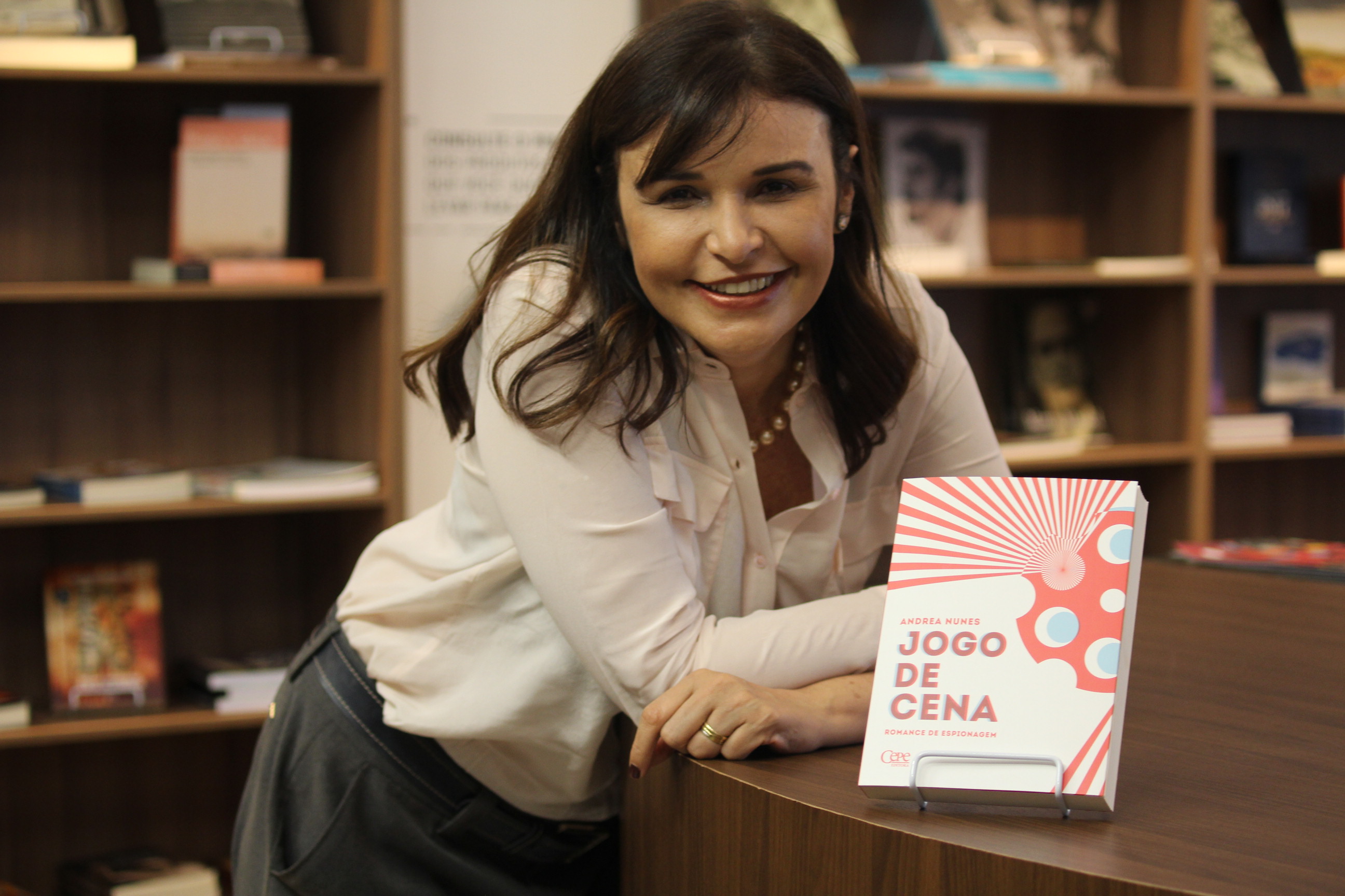 Jogo de Cena é o terceiro título de Andrea Nunes, uma das poucas escritoras brasileiras a enveredar pelo gênero do suspense – pouco menos de 30 mulheres no radar da Associação Brasileira de Escritores de Romance Policial e Terror (Aberst). Autora de outros dois títulos que seguem a mesma linha, O Código Numerati – conspirações em rede (2010) e A corte infiltrada (2014), a autora investe em temáticas contemporâneas referenciando fatos em seu texto ficcional.