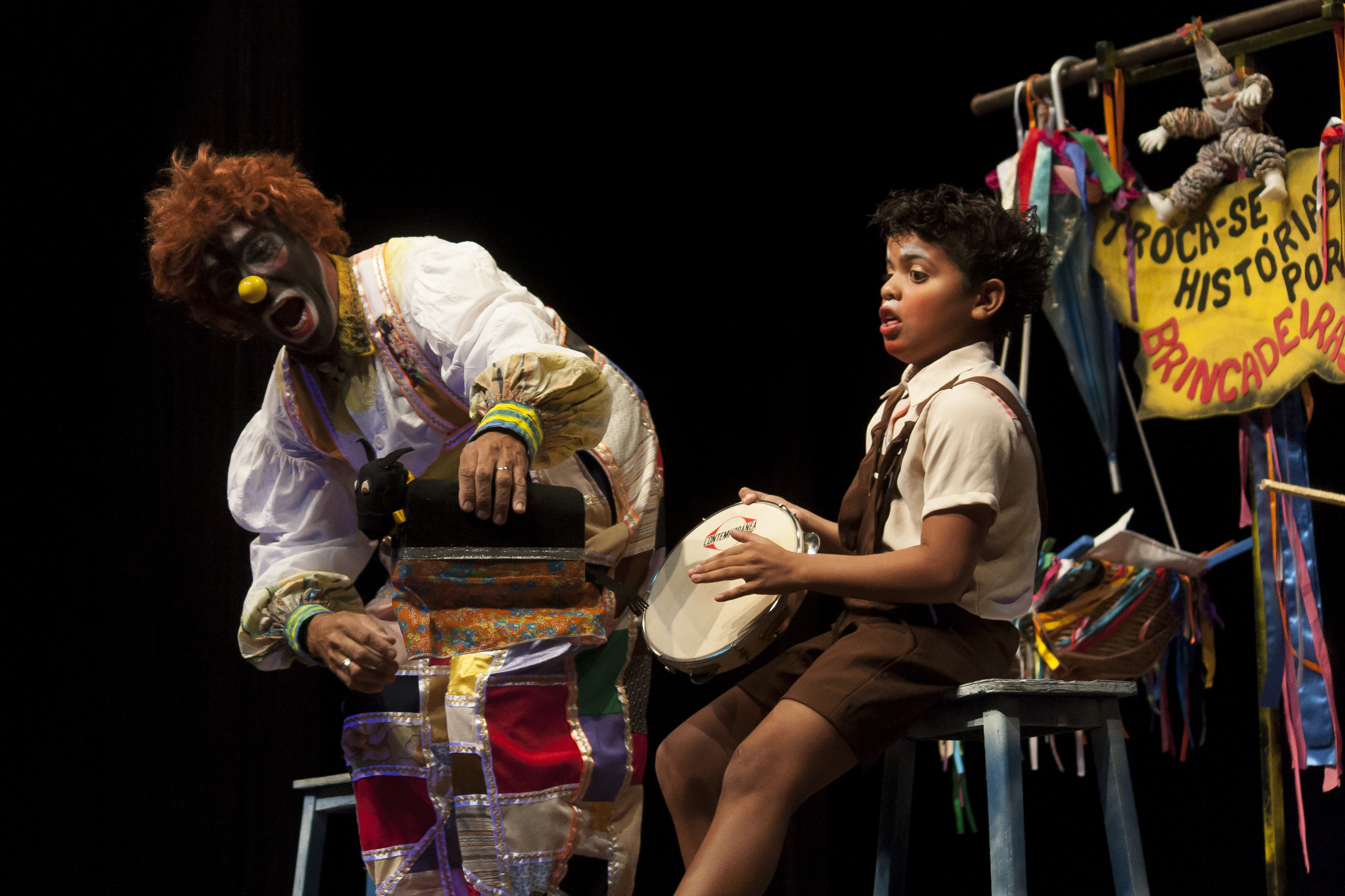 Em “Troca-se histórias por brincadeiras”, o velho palhaço Dengoso e seu sobrinho Pitoco vivem pelo mundo a brincar com as pessoas: andam de cidade em cidade trocando suas brincadeiras por quem queira contar uma história para eles. Já idoso, Dengoso faz qualquer negócio para quem queira narrar um conto, uma fábula ou mesmo um pedaço de sua vida. Quem conta uma história, ganha uma brincadeira e é nessa troca que a narrativa do espetáculo acontece, de forma interativa, dinâmica e lúdica, deixando crianças, jovens e adultos encantados. No Festin 2019, serão três apresentações gratuitas da companhia: no dia 13 de setembro (sexta-feira) às 16h ao lado da Biblioteca Municipal; dia 14 de setembro (sábado) às 10h no Calçadão da Avenida Brasil e no dia 15 de setembro (domingo) às 16h no Lago Municipal.