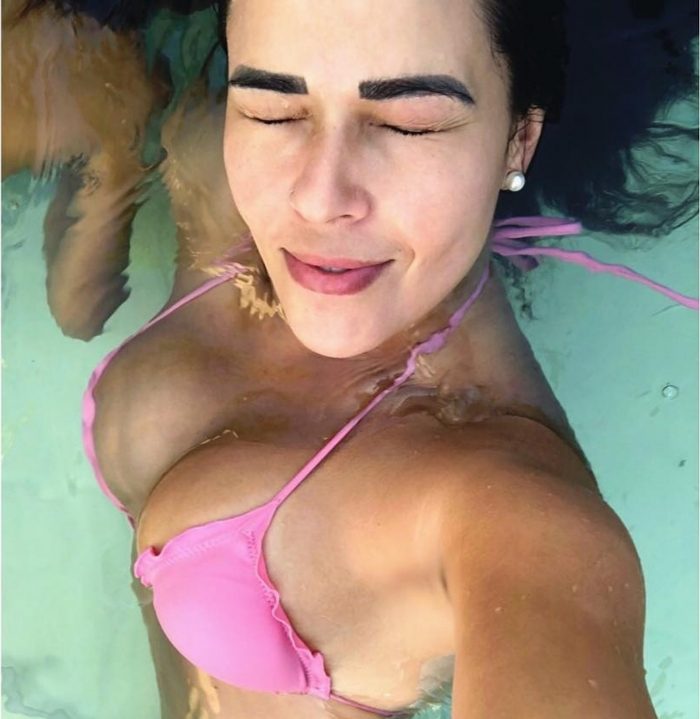 Seu último relacionamento com famoso foi com Marcos Chiesa, mais conhecido como o Bola, do ‘Pânico na TV’. Desde que sua foto passou a circular pela internet, ela tem preferido se isolar e não responde nem aos amigos.