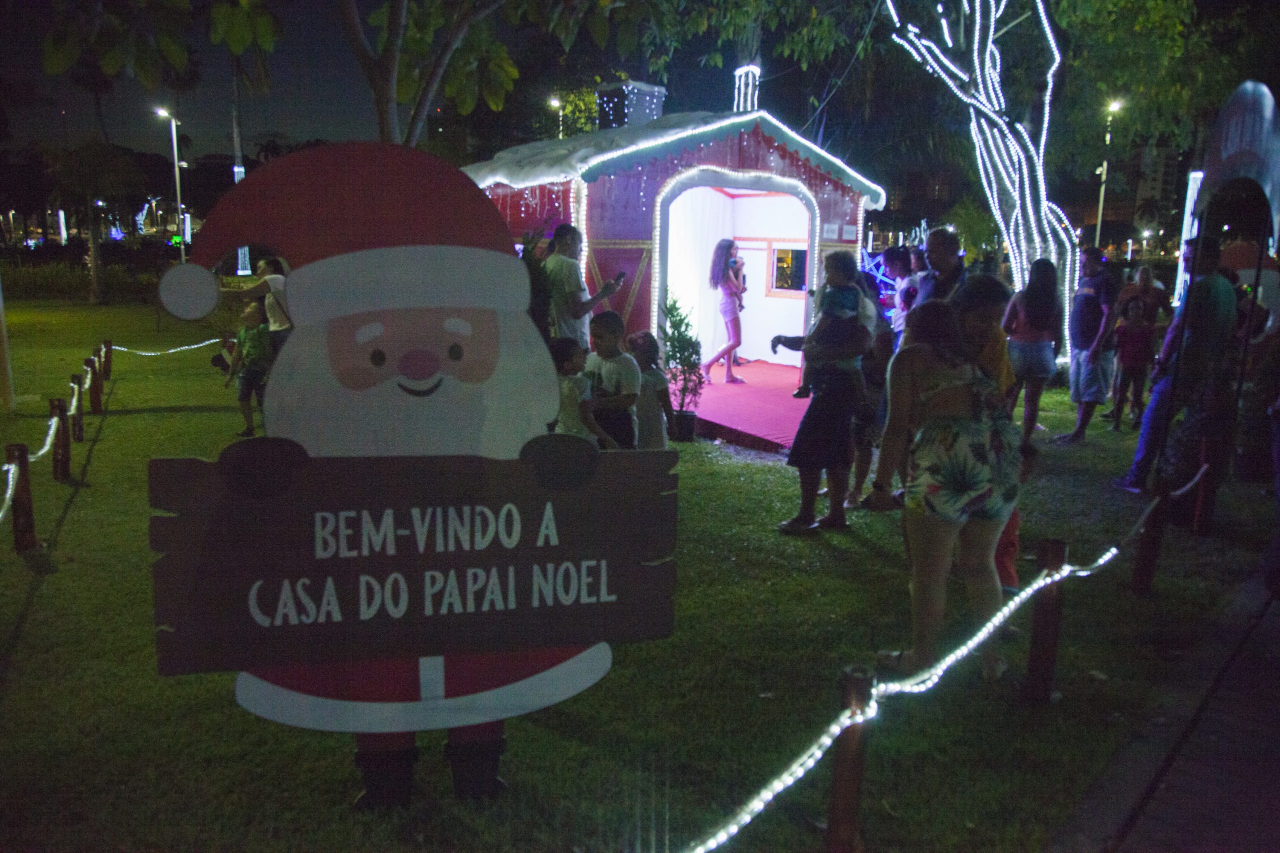 Construída pela Marcenaria Escola da Secretaria de Desenvolvimento Social (Sedes), a Casa de Papai Noel, que preserva a magia, encanto e brilho natalino, contará com a presença do Bom Velhinho, todos os domingos, sempre das 17h às 19h.