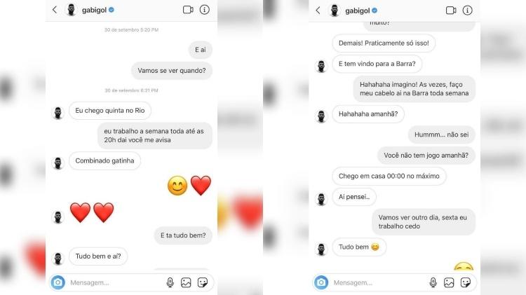 Uma conversa recente de Gabigol com a modelo Mariana Braguês, ex-namorada do ator Douglas Sampaio vazou. As conversas eram entre setembro e novembro de 2019 e mostravam bastante intimidade entre os dois, inclusive marcando encontros, o que o jogador batizou de ‘Nosso segredo’, já que vive (ou vivia) um relacionamento com a irmã de Neymar, Rafaella Santos.