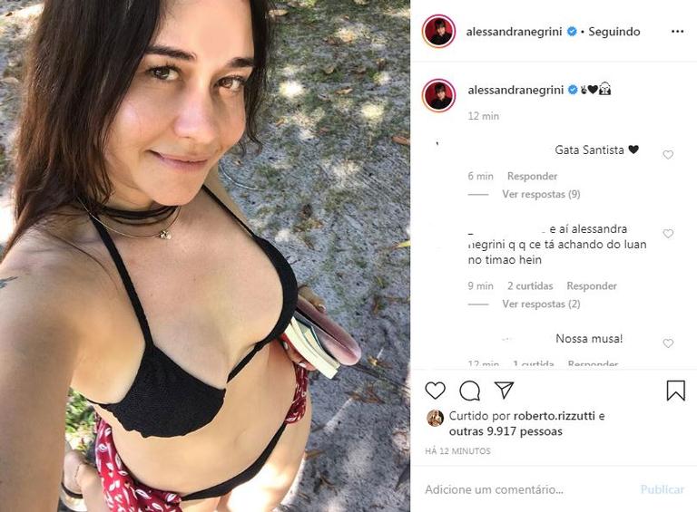 A atriz posou com um biquíni preto bem fininho e deixou o corpo impecável à mostra aos 49 anos. A beleza jovial de Alessandra chamou ainda mais a atenção dos seguidores.