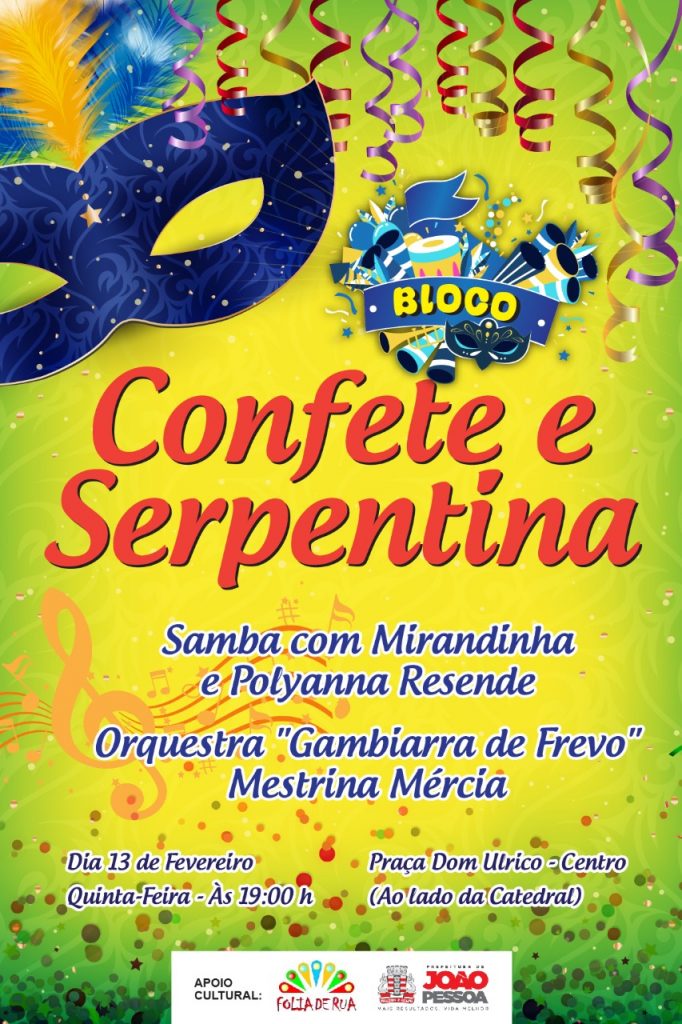 O Bloco Confete e Serpentina abre o Folia de Rua 2020 na próxima quinta-feira (13), na Praça Dom Ulrico, no Centro Histórico da Capital. A concentração dos foliões ocorre a partir das 20h.