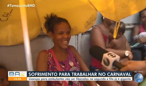 A repórter Adriana Oliveira, da Rede Bahia, afiliada da Globo em Salvador, estava conversando com populares sobre a fila gigantesca para o cadastramento de quem quer trabalhar no Carnaval e, durante uma entrevista, cometeu uma gafe envolvendo a suposta gravidez de uma mulher.