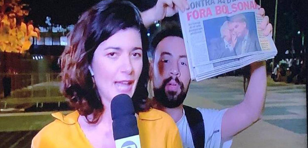 A repórter da Rede Globo Laura Cassano foi surpreendida durante uma entrada ao vivo para o programa SP2 por um homem que portava um exemplar do jornal Causa Operária, com manchetes contra as privatizações e que em seguida pediu “fora Bolsonaro”.