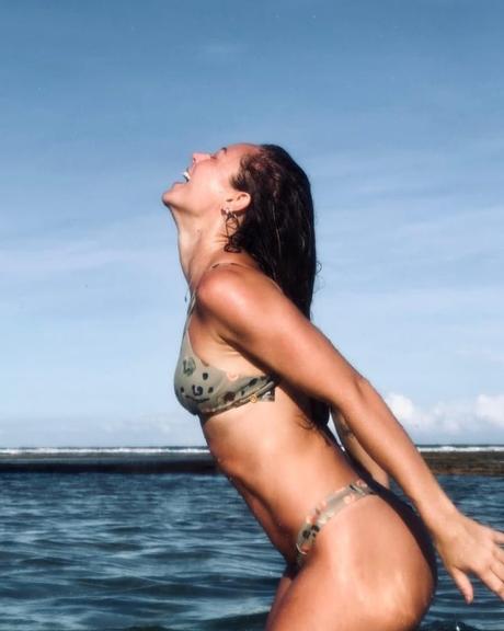 Paolla Oliveira compartilhou uma lembrança de um clique de biquíni enquanto brincava em meio às ondas do mar. Na legenda, ela apontou a saudade do momento.