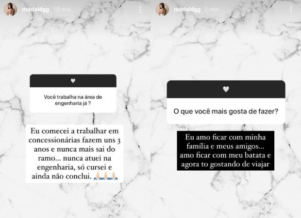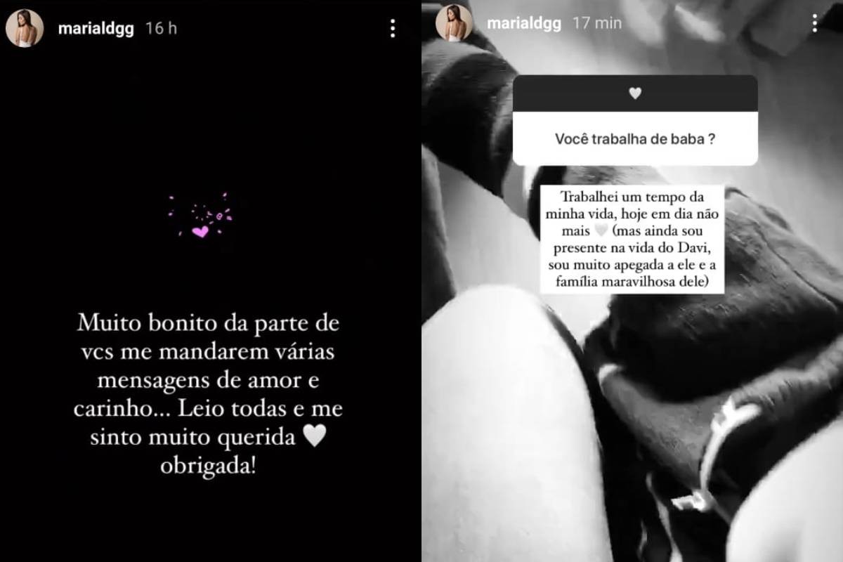 Depois, ao respondeu uma pergunta de uma pessoas, Maria revelou que já trabalhou como babá. “Trabalhei por um tempo da minha vida, hoje em dia não sou mais. Mas ainda sou presente na vida do Davi, sou muito apegada a ele e à família maravilhosa dele”, disse.