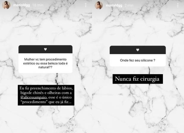 Mas a resposta que deixou os fãs mais empolgados foi quando Maria revelou seu maior sonho. “Ter filhos, casar e ser cem por cento realizada profissionalmente”, contou. Maria ainda negou que tenha silicone e falou dos procedimentos estéticos que já fez. “Eu fiz preenchimento de lábios, bigode chinês e olheiras”, relatou.