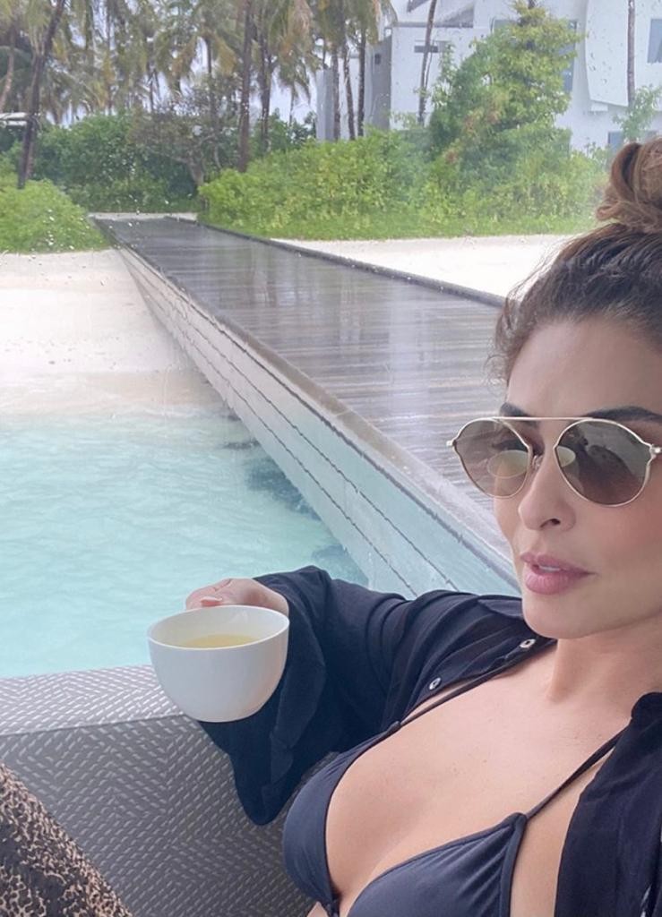 A atriz compartilhou, nesta terça-feira (17), detalhes de sua estadia em um hotel pra lá de chique e cheio de regalias, com vista panorâmica para o Oceano Índico.
